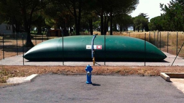 Issues de la technologie spécifique EXOM et EXOM+ : nos réserves incendie sont conçues dans un tissu polyester haute performance recouvert de PVC haute densité sur les deux faces, garantissant une parfaite étanchéité à la membrane,